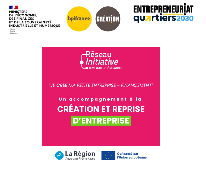 En 2024 et 2025, la coordination régionale Initiative Auvergne-Rhône-Alpes et 25 associations locales du réseau Initiative, dont la nôtre, mettent en œuvre une opération intitulée « je crée ma petite entreprise – financement » co-financée par l’Union Européenne via le Fonds Social Européen (FSE+) et par la Région Auvergne-Rhône-Alpes.