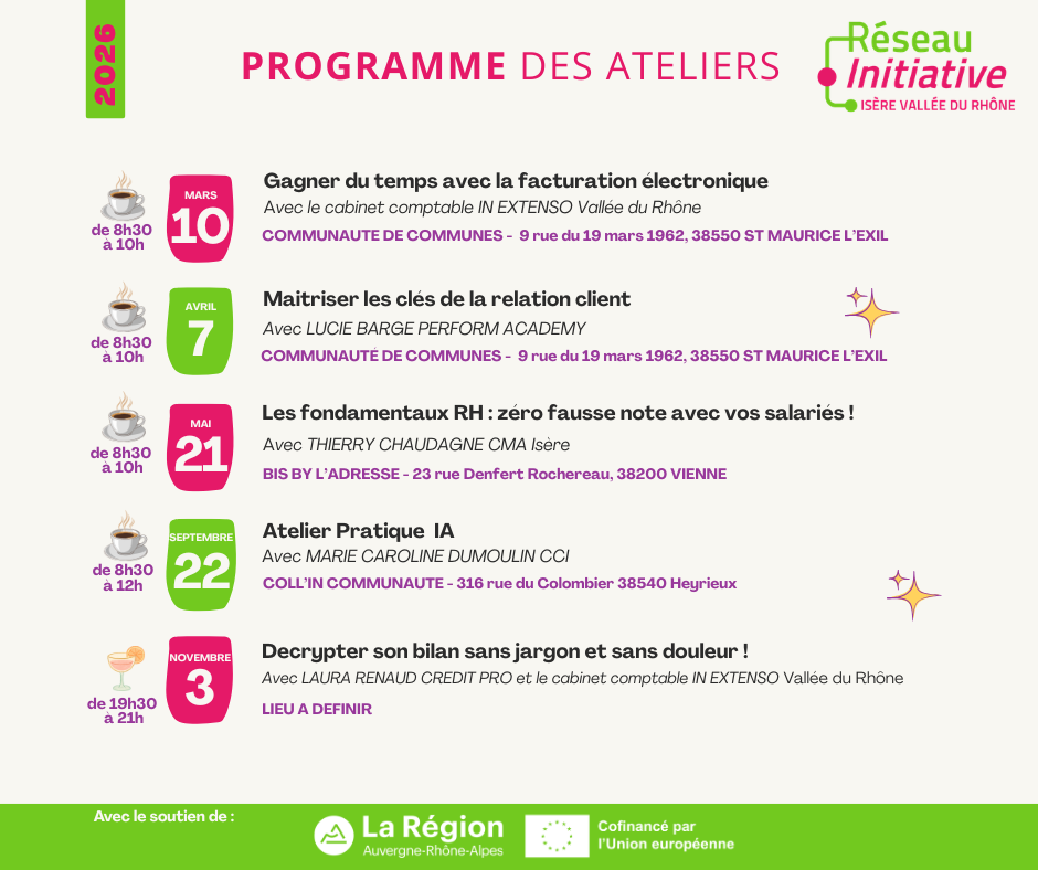 En 2026, nous proposons à nos entrepreneurs et à nos bénévoles une programmation d’ateliers collectifs concrets, utiles et directement applicables dans leur quotidien.